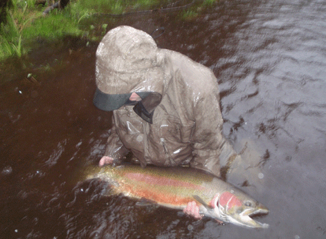 The Steelhead on the island average 6 to 10 pounds, with some fish reaching over 20 pounds. The your fishing gear has to be strong enough to handle these strong native fish. We recommend using no less then 10 pound test monofilament and strong hooks in size 1 or larger. We prefer to use heavier line and larger hooks but that is personal preference.